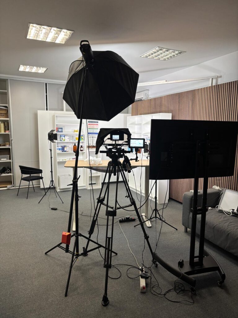 W wybranych przypadkach nagrania mogą odbywać się także w naszym studiu w Krakowie, które zostało zaprojektowane z myślą o branży medycznej. Studio oferuje kilka różnorodnych scenerii – od nowoczesnej aranżacji medycznej, przez salonowy klimat, po wnętrze przypominające aptekę. To idealna przestrzeń do nagrywania wideocastów, wywiadów i materiałów edukacyjnych.