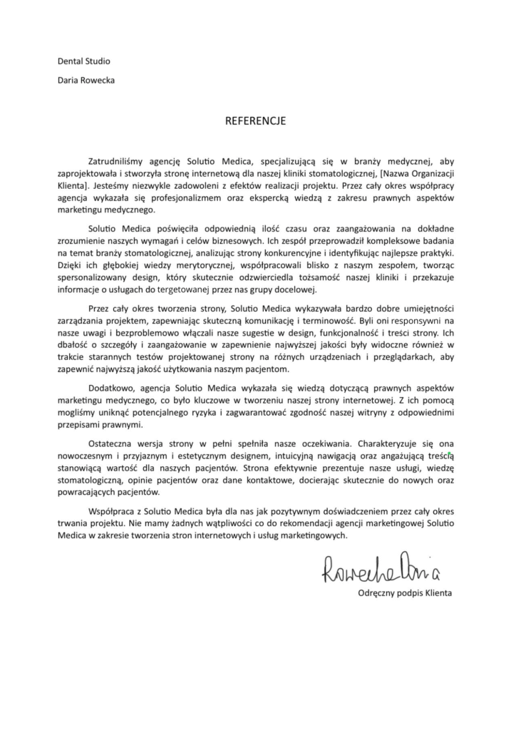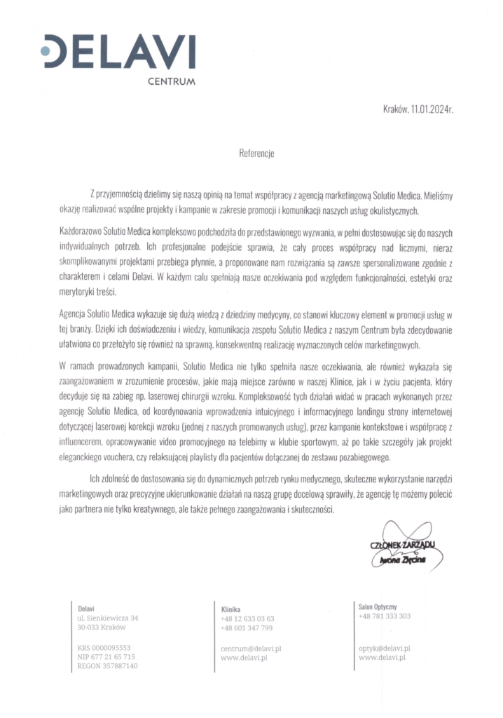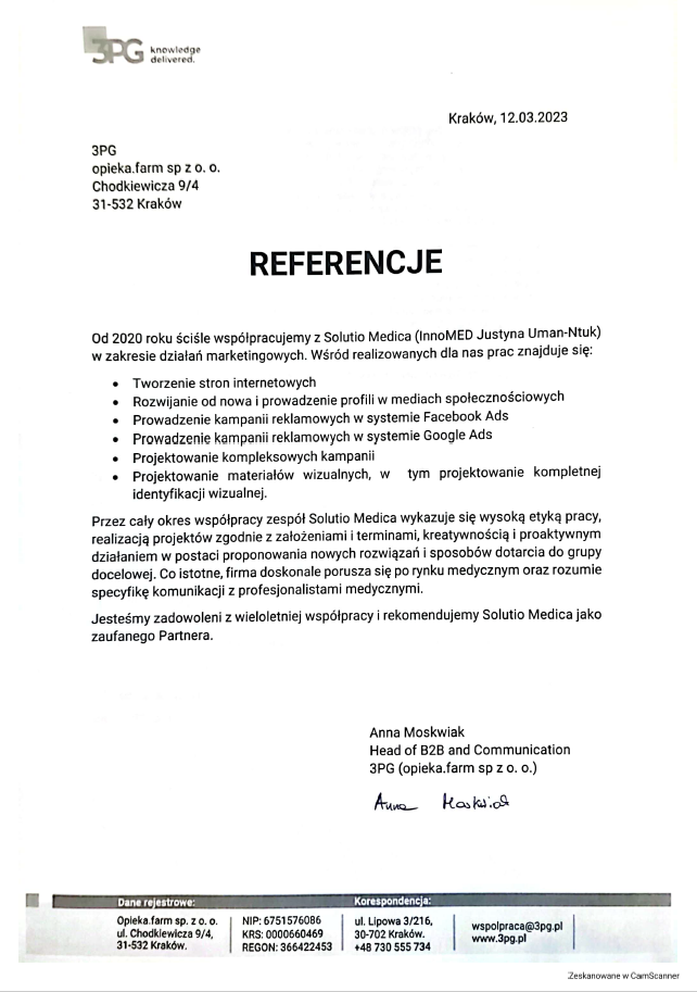 Z pełnym przekonaniem rekomendujemy Solutio Medica jako partnera o wysokich kompetencjach w zakresie marketingu medycznego.”