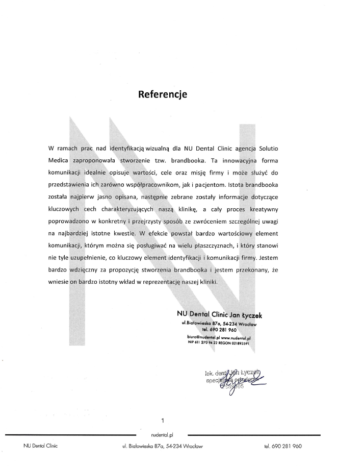 „Agencja Solutio Medica zaproponowała stworzenie brandbooka, który w sposób przejrzysty opisuje wartości, cele i misję naszej kliniki.